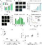 Figure 2. Estimating the surface density of M2R-YFP. All data are from one experiment. (A) - (left) Representative micrographs of oocytes (membrane at equator) expressing equal amounts of RNAs of YFP-GIRK1 and GIRK2, and 1 ng M2R (wt). Injected YFP-GIRK1 mRNA amounts are indicated. (right) Representative currents from oocytes from the same experiment (from the same groups as in left panels). Note the gradual increase in Ibasal and Itotal, reaching a plateau at 2 ng/oocyte of channelâs RNA. The current measurements in this experiment were done with a slower perfusion rate and were not included in the kinetic analysis. (B) â Representative micrographs of oocytes, injected with the indicated amounts of M2R-YFP, imaged at the same day and under identical settings as those in A. (C) â Itotal of YFP-GIRK1/GIRK2 channels as a function of channelâs RNA dose. (D) â calibration of the surface density of YFP. YFP-GIRK1 fluorescence (in arbitrary units, AU) is plotted versus channel density induced by the two lowest doses of GIRK RNA (<1 ng/oocyte), within the linear range of fluorescence-current relationship. Channel density was calculated from Itotal as explained in the text. The correlation between fluorescence and number of YFP-GIRK1 molecules is shown with superimposed linear regression line, extended to origin of coordinates. The regression equation was y=4x, i.e. one channel/µm2 corresponds to fluorescence intensity of 4 AU. Note that, since each channel has two YFP molecules, the calibration factor in this experiment is: 1 YFP molecule/µm2 = 2 AU. (E) âestimating the surface density of M2R-YFP, for RNA concentrations of 1, 2 and 5 ng/oocyte. YFP fluorescence, in AU, is shown on the left Y-axis. M2R-YFP surface density (right axis) was calculated using the calibration factor derived from YFP-GIRK1/GIRK2 measurements. The relationship between M2R-YFP RNA dose and M2R-YFP surface density was fitted with linear regression, extended to the origin of coordinates, in the form y=62.5x. |