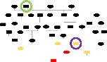 Fig 1. Pedigree of proband Thoroughbred foals affected with idiopathic hypocalcemia.A pedigree analysis was performed on the two proband affected foals (Cases #1 and 2) using Pedigraph (8). The sire of one affected foal was found to be the other affected foal’s grandsire (purple circle). Additionally, foals were related on the dam lines within six generations (green circle). Circles = females, squares = males, red = affected foals, yellow = unaffected horses, black = horses unavailable for evaluation.