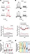 Fig S6. Cx43 variants carrying a carboxyterminal truncation or a C271S mutation do not affect gating when co-expressed as heteromeric channel with Cx26S17F. (A) Representative current traces elicited by a voltage pulse from -80 to 0 mV from oocytes expressing heteromeric channels formed by full length, CT truncated Cx43 or Cx43C271S with Cx26S17F. Black and red traces correspond to voltage activated hemichannel currents in the absence or presence of 10 μM DEENO, respectively. Representative traces of n = 9 per group. (B) Nitric oxide did not activate homomeric Cx26 and Cx26S17F hemichannels. Representative current traces elicited by a voltage pulse from -80 to 0 mV for an oocyte expressing Cx26 and Cx26S17F. Black and red traces correspond to voltage activated hemichannel currents in the absence or presence of 10 μM DEENO, respectively. Representative traces of n = 6 per group. |