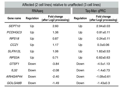 Figure S1: The top six up- and top four down-regulated genes from the RNA sequencing results were selected for qPCR validation. |