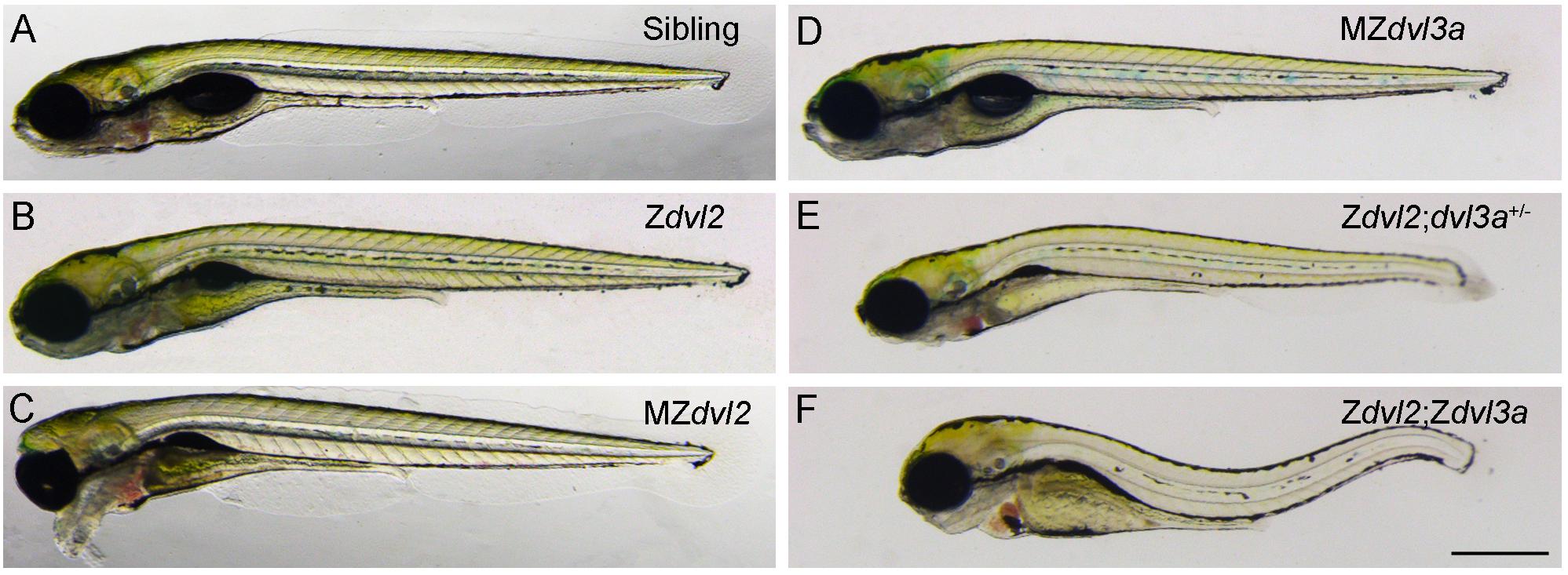 Mutational analysis of dishevelled genes in zebrafish reveals distinct functions in embryonic patterning and gastrulation cell movements.