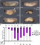 Still from Supplementary Movie S1. Blastopore closure in uninjected and fry-depleted embryos. Time-lapse movies of gastrulating embryos. (left) Uninjected embryo (n = 12) (still frames a in Supplementary Fig. S5). (middle and right) fry-MO (15 ng) injected embryos (n = 12) (still frames e and f respectively in Supplementary Fig. S4). Note both embryos present blastopore closure delay relative to the uninjected embryo. Timestamp shows minutes elapsed. The movie begins at late blastula stage (St. 9) and continues through neurulation (St. 15). 1 frame every 3 minutes. |