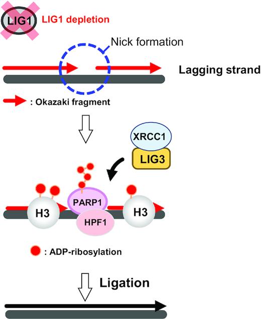 HPF1-dependent PARP activation promotes LIG3-XRCC1-mediated backup pathway of Okazaki fragment ligation.