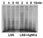 Figure S6. Micrococcal nuclease digestion of chromatin fractions in assembled in LSS extracts in the presence of AgNCs. Chromomal DNA was purified after nuclease digestion for the indicated times and separated by 1.5% TBE-agarose gel electrophoresis. |