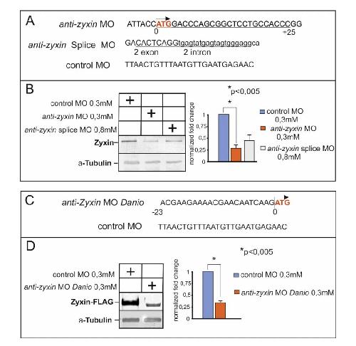 D. For testing specificity of these MOs, mRNA encoding Danio zyxin tagged at the C-terminus with