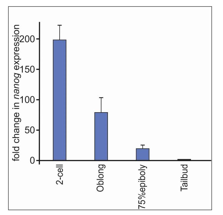 The profile was obtained by qRT-PCR from total RNA obtained from 10 Danio embryos lysed at the