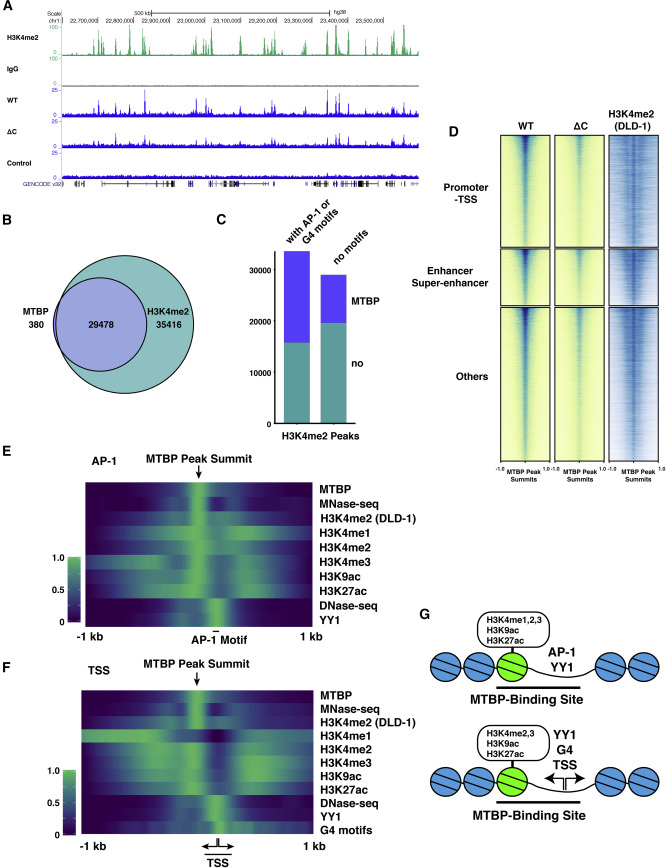 The processes that control where higher eukaryotic cells initiate DNA replication throughout the genome are not understood clearly. In metazoans, the Treslin-MTBP complex mediates critical final steps in formation of the activated replicative helicase prior to initiation of replication. Here, we map the genome-wide distribution of the MTBP subunit of this complex in human cells. Our results indicate that MTBP binds to at least 30,000 sites in the genome. A majority of these sites reside in regions of open chromatin that contain transcriptional-regulatory elements (e.g., promoters, enhancers, and super-enhancers), which are known to be preferred areas for initiation of replication. Furthermore, many binding sites encompass two genomic features: a nucleosome-free DNA sequence (e.g., G-quadruplex DNA or AP-1 motif) and a nucleosome bearing histone marks characteristic of open chromatin, such as H3K4me2. Taken together, these findings indicate that Treslin-MTBP associates coordinately with multiple genomic signals to promote initiation of replication.
