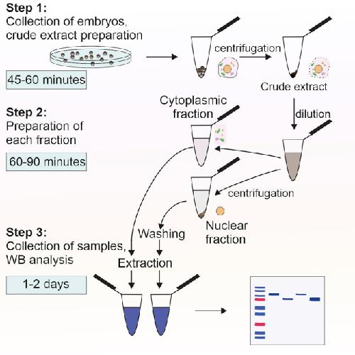 This protocol for the separation of nuclear and cytoplasmic fractions of cells of Xenopus laevis embryos was developed to study changes in the intracellular localization of the Zyxin and Ybx1 proteins, which are capable of changing localization in response to certain stimuli. Western blot analysis allows the quantification of changes in the distribution of these proteins between the cytoplasm and nucleus, whereas the posttranslational modifications specific to each compartment can be identified by changes in electrophoretic mobility. For complete details on the use and execution of this protocol, please refer to Parshina et al. (2020).