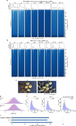 Extended Data Fig. 6. Effects of rpb1 knock-down on TAD establishment.a, Effect of rpb1 knock-down on embryo development. Knock-down of rpb1 was repeated for at least two times with similar results. b, Arrowhead corner score distribution. c, TAD size distribution. d, Percentage of genome folds in TADs. |