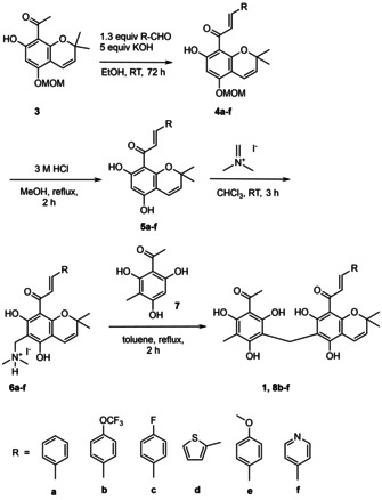 Scheme 1. Total synthesis of rottlerin (1) and derivatives 8 b–f.