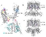 Figure 6. a) Structure of a KCNQ1 subunit and potential binding sites for small molecules. b) open KCNQ1 channel (6V01, PIP2 bound, human), c) closed KCNQ1 channel (6UZZ, human).