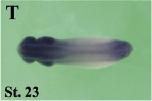 clk3 (CDC like kinase 3) gene expression In a Xenopus laevis embryo, NF stage 20, assayed via in bsitu hybridization, dorsal (R) and posterior-dorsal (S) view, anterior left. |