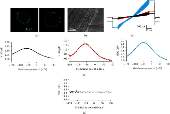 The prestin-based active process in the mammalian outer hair cells (OHCs) is believed to play a crucial role in auditory signal amplification in the cochlea. Prestin belongs to an anion transporter family (SLC26A). It is densely expressed in the OHC lateral plasma membrane and functions as a voltage-dependent motor protein. Analog genes can be found in the genome of nonmammalian species, but their functions in hearing are poorly understood. In the present study, we used the gerbil prestin sequence as a template and identified an analog gene in the bullfrog genome. We expressed the gene in a stable cell line (HEK293T) and performed patch-clamp recording. We found that these cells exhibited prominent nonlinear capacitance (NLC), a widely accepted assay for prestin functioning as a motor protein. Upon close examination, the key parameters of this NLC are comparable to that conferred by the gerbil prestin, and nontransfected cells failed to display NLC. Lastly, we performed patch-clamp recording in HCs of all three hearing organs in bullfrog. HCs in both the sacculus and the amphibian papilla exhibited a capacitance profile that is similar to NLC while HCs in the basilar papilla showed no sign of NLC. Whether or not this NLC-like capacitance change is involved in auditory signal amplification certainly requires further examination; our results represent the first and necessary step in revealing possible roles of prestin in the active hearing processes found in many nonmammalian species.