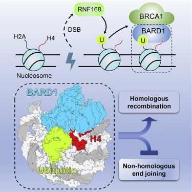 Structural insight into BRCA1-BARD1 complex recruitment to damaged chromatin.