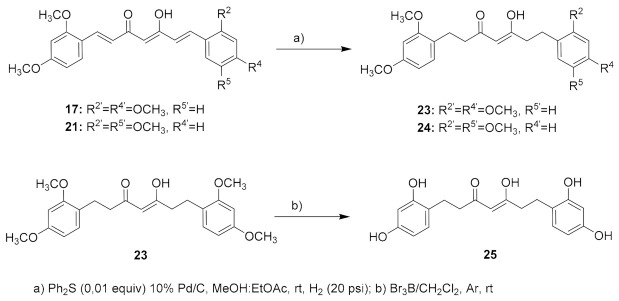Scheme 2. Synthesis of tetrahydrocurcumins 23-25.