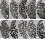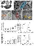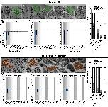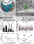 Supplementary figure 2. Identification of Xenopus gastrula tissues in TEM images. (A-E) Distinct morphological characteristics of cells from ectoderm (Ec) (A, C), endoderm (En) (A, B), prechordal mesoderm (PCMe) (A, C), leading edge mesendoderm (LEMe) (A, D), and chordamesoderm (CMe) (A, E). Ectoderm cells are small, with the smallest yolk platelets and sparse pigment granules in the inner layers and more on the apical surface of the epithelial ectoderm (A, C). Endoderm cells are the largest cells in the embryo and generally elongated along the animal-vegetal axis, containing the largest yolk platelets (A, B). Leading edge mesendoderm cells are smaller than endoderm cells but have large yolk platelets (A, D). Prechordal mesoderm cells are similar in size to mesendoderm cells but their yolk platelets are smaller than mesendodermal and larger ectoderm ones (A, C). Chordamesoderm cells are similar in size to ectoderm cells but contain a higher density of yolk platelets (A, E). (F-G’) Cell circumference (F) and yolk platelet density (G) are quantified to identify cells in TEM images. (F’-G’) 95% confidence intervals of circumference and density data. Dotted black lines, boundaries to statistically insignificant values. Error bars represent standard deviation of the mean. For specific p values, refer to Supplementary Table 1. Scale bars: 10μm. Ec: n = 73 cells, LEMe: n = 49, PCMe: n = 51, CMe: n = 60, En: n = 47; from 5 separate embryos. |