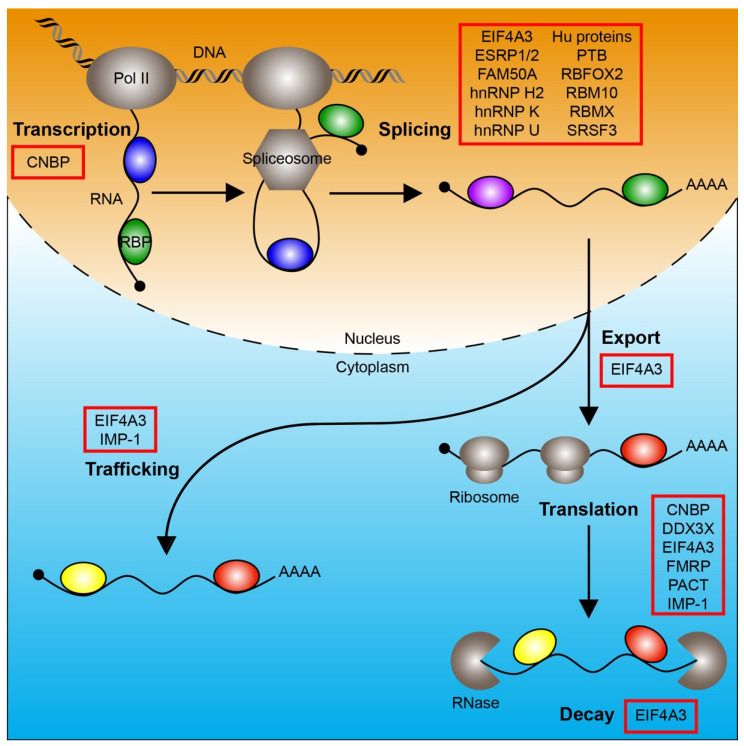 Genes referenced: cnbp col2a1 ddx3x dlx2 eif4a3 elavl1 elavl4 esrp1 fam50a foxd3 hnrnpk hnrnpu ptbp1 rbfox2 rbmx sox9 srsf3 tbx2 tcof1 tfap2a