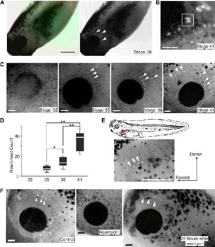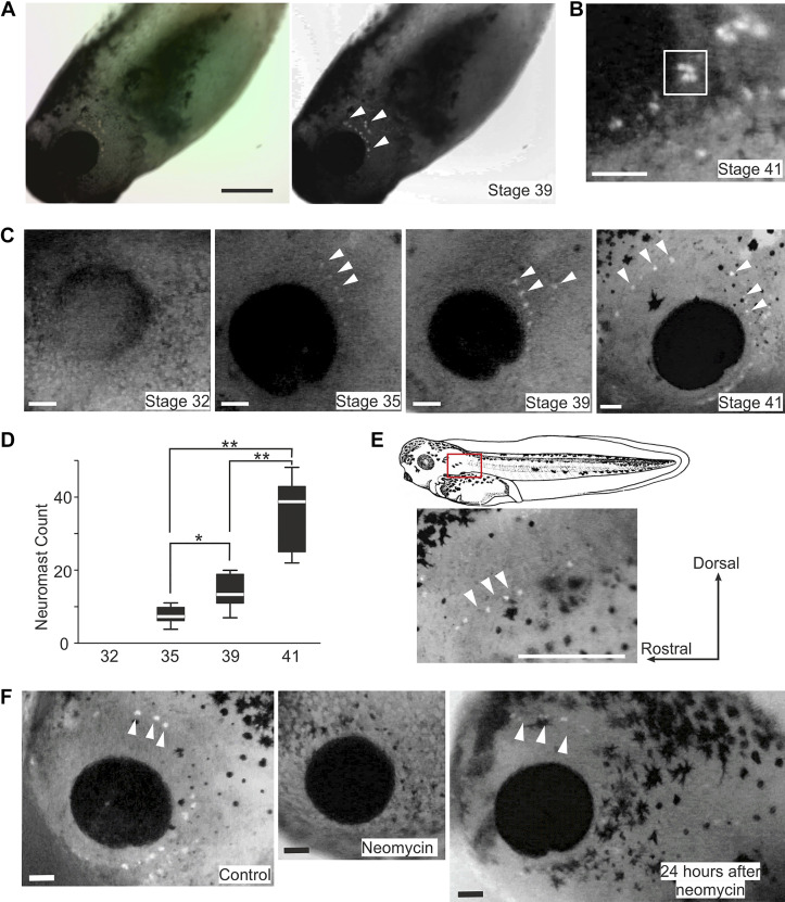 Quinzio, The lateral line system in anuran tadpoles: neuromast morphology, arrangement, and innervation. 2014, Pubmed , Xenbase