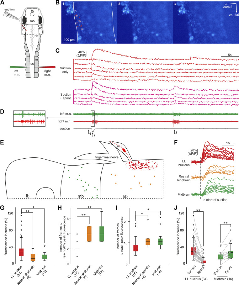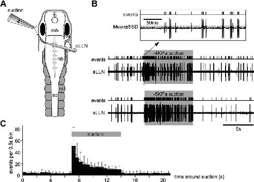 Haehnel-Taguchi, Afferent and motoneuron activity in response to single neuromast stimulation in the posterior lateral line of larval zebrafish. 2014, Pubmed