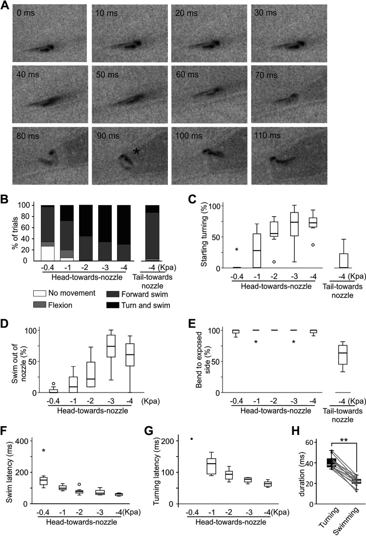 Olszewski, Zebrafish larvae exhibit rheotaxis and can escape a continuous suction source using their lateral line. 2012, Pubmed