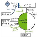 Figure 1. Overview of B. variegata genome assemblies. The large circle represents the total read set. Assemblies are numbered 1–4. hi K, highly over-represented kmers (at least 100x average frequency); Tr, B. v. variegata transcriptome; repeat(−) reads, repeat-subtracted portion of the total read set. CLC contigs with a BLAST+ hit (query: transcriptome) are represented by a blue rectangle. |