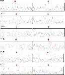 Figure 4. DNA sequence results of six mutated hNCC-pGEM T vectors. The DNA sequence results of six mutated hNCC-pGEM T vectors (T60M, L215F, D486N, N534K, Q617R, and R928C). The mutations’ sequence results are listed at the left column and the corresponding sites of WT are presented at the right column. The sites of mutations are denoted by red arrows.