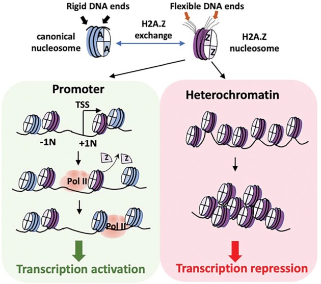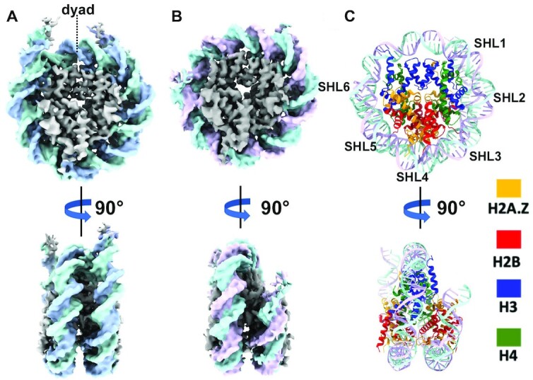 Zhou, Structural basis of nucleosome dynamics modulation by histone variants H2A.B and H2A.Z.2.2. 2021, Pubmed