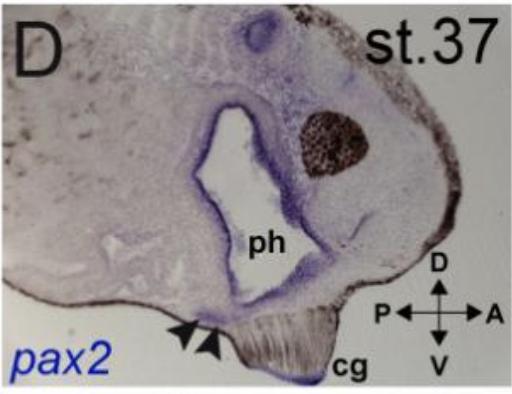 Xenopus Pax-2/5/8 orthologues: novel insights into Pax gene evolution and identification of Pax-8 as the earliest marker for otic and pronephric cell lineages.