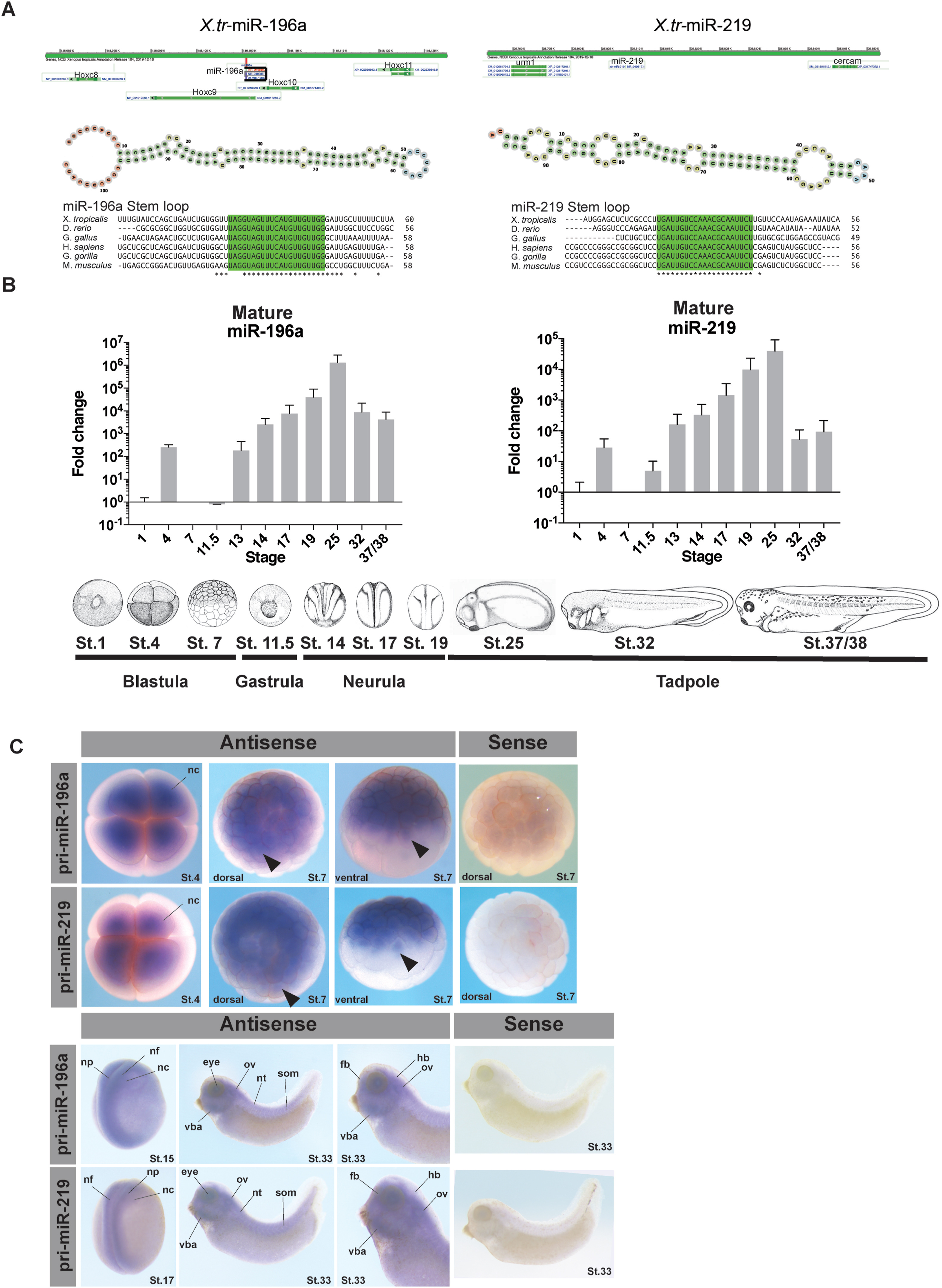 Expression of microRNAs during embryonic development of Xenopus tropicalis.