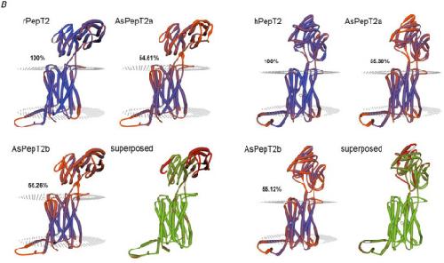 Unified modeling of the mammalian and fish proton-dependent oligopeptide transporter PepT1.