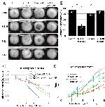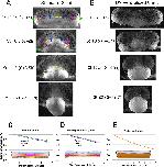 Figure 5—figure supplement 1. Example of parallel plate compression test.Frames taken at 0, 10, 180, and 220 seconds (A, B, C, D, respectively). Blue line marks the top of the explant prior to compression (0 s, A). Orange line marks top of explant after initial compression is applied (10 s, B). Red line marks top of explant after 180 s of stress relaxation (C). Green line marks top of explant 10 s after plate is lifted off explant (220 s, D). Compression is applied to 20% strain over the first 10 s, then stabilized for an additional 10 s, after which active plate movement stops and the explant is allowed to undergo stress relaxation (E). The shape of the explant profile is measured at 180 s (F), giving the radii of curvature and the angle between explant and plate (F – inset; R1–R3, A); these are used to give the surface tension (see Materials and methods). Figure 5—figure supplement 1F inset is reproduced from image from CellScale MicroTester software, with permission from CellScale. |