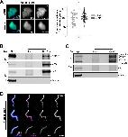 Figure 1—figure supplement 3. Condensation parameters.(A–D) Scatter plots of the percentage of pixels below a threshold of 35% of image maximum fluorescence intensity (the condensation parameter), for indicated conditions in Figure 1 and Figure 1—figure supplement 1. Error bars represent SD, and the mean values are indicated. n = 20 structures for each condition. Two biological replicates were performed, quantified structures are from a single experiment. |
