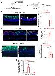 Figure 6. Analysis of proliferation in X. tropicalis and X. laevis rho crispants. (A) Timeline diagram of the experimental procedure used in (B–H). (B,C) BrdU assay on retinal sections from stage 56–60 control and crispant X. laevis tadpoles. Sections were co-labelled for Rhodopsin. Arrows point to double positive cells. BrdU-positive cells are quantified in (C). (D) Typical sections from stage 56–60 crispant X. laevis tadpoles, immunostained for PCNA (a marker of proliferative cells) and YAP (a marker of Müller cells). Arrows point to double positive cells. (E) Quantification of proliferating Müller cells (YAP- and PCNA-positive). (F,G) BrdU assay on retinal sections from stage 56–60 control and crispant X. tropicalis tadpoles. Sections were co-labelled for Rhodopsin. BrdU-positive cells are quantified in (G). (H) Comparison of BrdU incorporation between X. laevis and X. tropicalis crispants at stage 56–60. The number of BrdU-positive cells was normalized to retinal cell surface. In (B,D,F) cell nuclei are counterstained with Hoechst (blue). In (C,G), counting was performed in the central retina, considering only the inner and outer nuclear layers. In graphs, data are represented as mean ± SEM and each point represents one retina. * p < 0.05; ** p < 0.01; **** p < 0.0001 (Mann–Whitney tests). GCL: ganglion cell layer, INL: inner nuclear layer, ONL: outer nuclear layer. Scale bars: 50 µm in (B,F), 25 µm in (D).