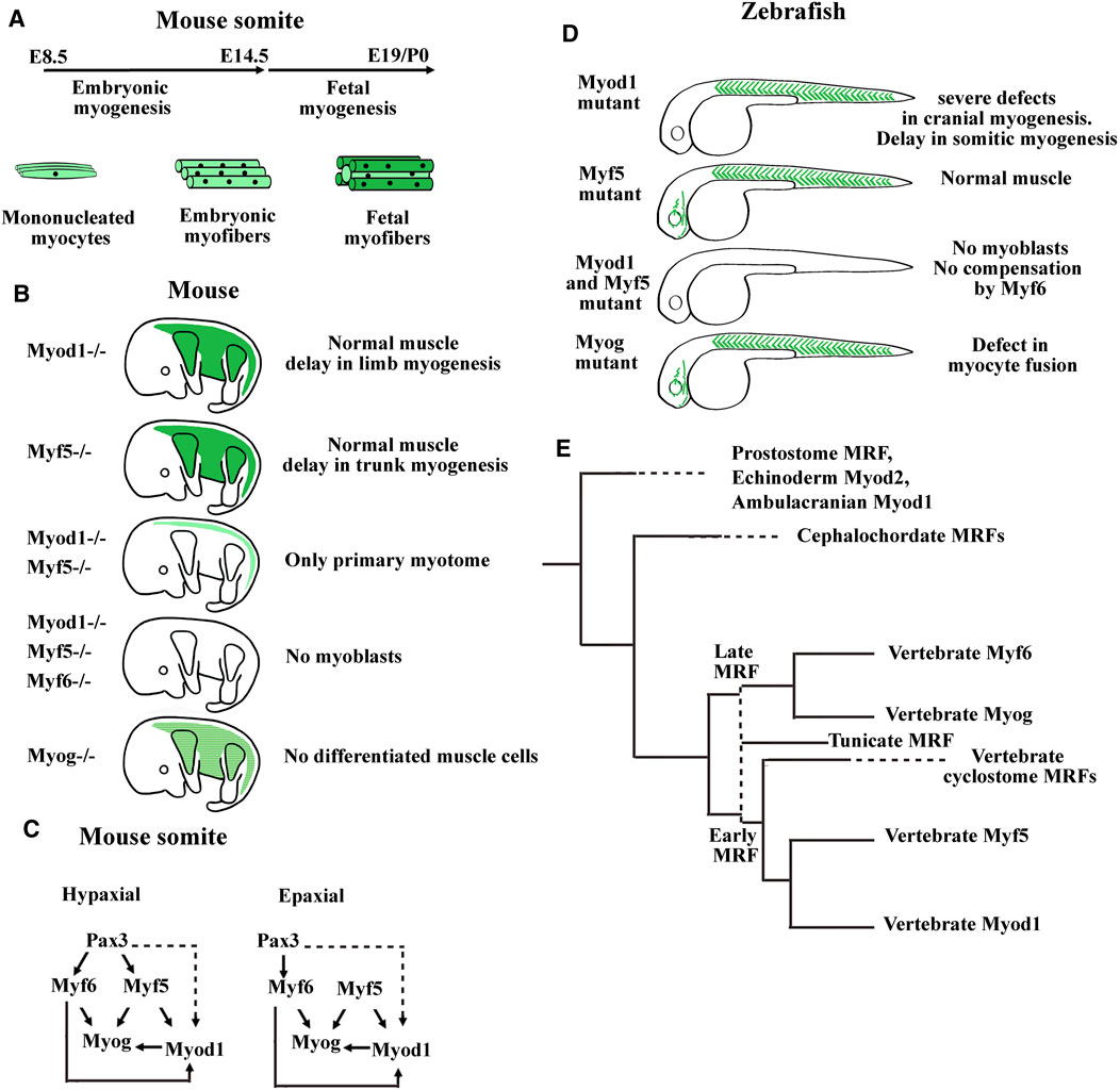 Tajbakhsh, Redefining the genetic hierarchies controlling skeletal myogenesis: Pax-3 and Myf-5 act upstream of MyoD. 1997, Pubmed