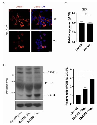 Zic5 stabilizes Gli3 via a non-transcriptional mechanism during retinal development.