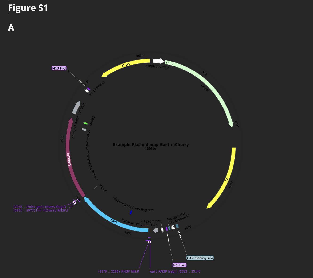 Supplementary Figure 1. Example plasmid map of Gar1 fluorescently fused with mCherry. Figure was generated using Snap Gene. |
