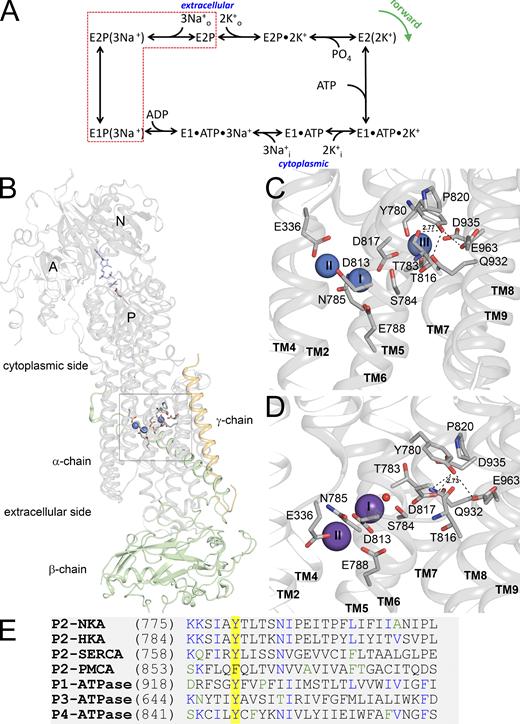 Kanai, Crystal structure of a Na+-bound Na+,K+-ATPase preceding the E1P state. 2013, Pubmed