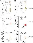 Figure 5—figure supplement 1. Gating properties of the epilepsy-associated mutations - R198Q and R214W.(A, B) Representative normalized current time courses of (A) activation and (B) deactivation from labeled (black) F192C, (red) R198Q ,and (maroon) R214W mutated channels in response to the indicated voltage steps. The dashed lines in (A) and (B) represent 50% of the normalized current levels at the end of the pulse. (C) Summary of the time courses of (open symbols) current and (filled symbols) fluorescence is quantified as the time to reach 50% maximum level at the end of the depolarizing pulse as in (A and the fluorescence, inset). (D) Summary of Tau values for deactivation of current for (black) F192C, (red) R198Q, and (maroon) R214W, respectively. (E) Summary of (open symbols) G(V)1/2 and (filled symbols) F(V)1/2 values for the (cyan) F192C, (red) R198Q, and (maroon) R214W. Data is presented as mean ± SEM, n=8–11. Statistical significance was determined using ANOVA and Tukey’s post hoc test, and significance level was set at p<0.05. Asterisks denote significance: p<0.05*. |