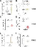 Supplementary Figure 7. Gating properties of the epilepsy-associated mutations - R198Q and R214W. (A, B) Representative normalized current time courses of (A) activation and (B) deactivation from labeled (black) F192C, (red) R198Q ,and (maroon) R214W mutated channels in response to the indicated voltage steps. The dashed lines in (A) and (B) represent 50% of the normalized current levels at the end of the pulse. (C) Summary of the time courses of (open symbols) current and (filled symbols) fluorescence is quantified as the time to reach 50% maximum level at the end of the depolarizing pulse as in (A and the fluorescence, inset). (D) Summary of Tau values for deactivation of current for (black) F192C, (red) R198Q, and (maroon) R214W, respectively. (E) Summary of (open symbols) G(V)1/2 and (filled symbols) F(V)1/2 values for the (cyan) F192C, (red) R198Q, and (maroon) R214W. Data is presented as mean ± SEM, n=8â11. Statistical significance was determined using ANOVA and Tukeyâs post hoc test, and significance level was set at p<0.05. Asterisks denote significance: p<0.05*. |