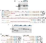 Fig. S9. Sanger DNA sequencing data show the mutations induced by SaCas9 and KKH SaCas9 targeting the genes showed in Fig. 5. For all the panels, the wild-type sequence is shown at the top with the target site highlighted in yellow and the PAM sequence in blue text. Red dashes indicate deletions and lowercase letters in red indicate insertions or mutations. The numbers in parentheses indicate ratio of this sequence in the total colonies sequenced. For target site designation, the gene name is in the middle, the prefixes Sa- and KKH- represent SaCas9 and KKH SaCas9, respectively. The suffixes -T1 and -T2 represent the first and the second target site designed in a given gene, respectively. |