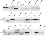 Fig. S7. T7EI assay data show the mutagenic activities of xCas9 3.7 targeting non-NGG PAM sites in X. tropicalis embryos. The targeting sites labelled in red and blue are the effective ones with their effective gray values indicated at the bottom. The blue ones have been further verified by Sanger DNA sequencing. C, control. For target site designation, in addition to the gene name, the name of the Cas9 variant is used as a prefix and the PAM motif is indicated as a suffix. |