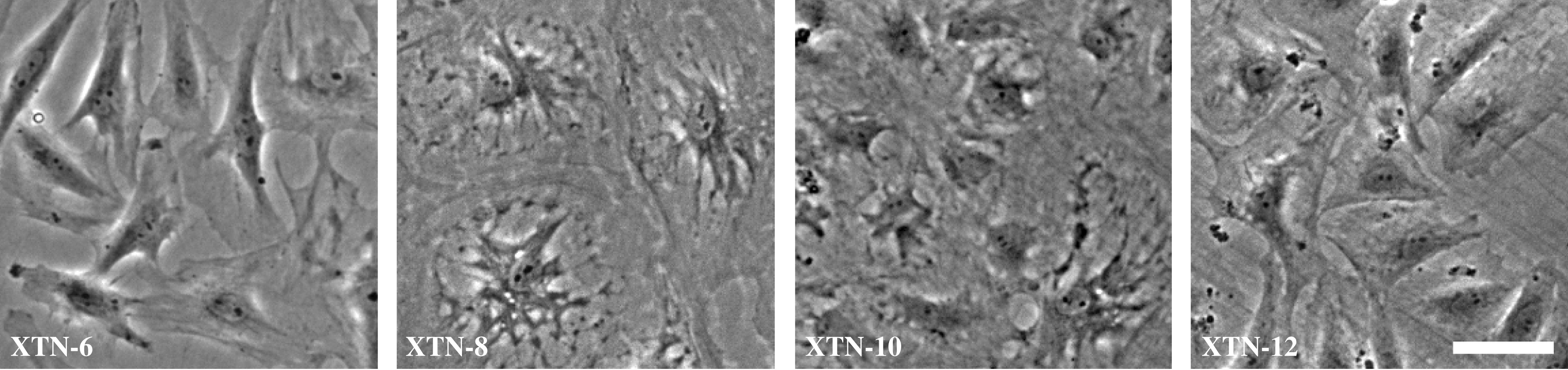 Figure 1. Phase-contrast images of four selected Xenopus tropicalis cell lines. Bar = 50 µm.