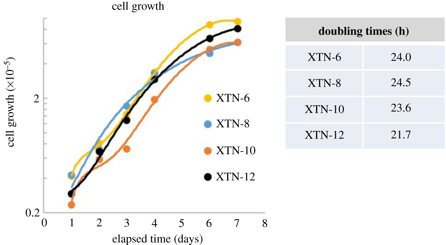 Figure 3. Growth properties of four X. tropicalis cell lines.