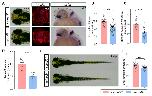 Figure 3. Katnal2-/- larvae displayed morphological changes. (A) Illustrations of the measurements of the distance between the eyes, the distance between the optic tecta, and the area of forebrain and midbrain. (B) Comparisons of the normalized interorbital distance of 4 dpf katnal2+/+ and katnal2-/- larvae (N = 30 for each genotype). (C) Normalized width between optic tecta of 4 dpf larvae (+/+, N = 23; -/-, N = 22). (D) Normalized area of the forebrain and midbrain region for 1 dpf embryos as determined by pax2a staining (N = 14 for each genotype). (E,F) Comparison of the body length of 4 dpf katnal2+/+ and katnal2-/- larvae (N = 30 for each genotype). Data are shown as mean ± S.E.M.; *** indicates p < 0.001.