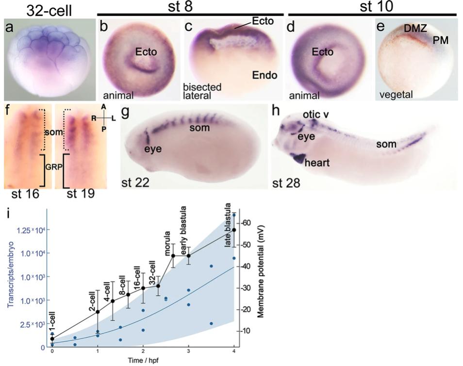 Levin, Asymmetries in H+/K+-ATPase and cell membrane potentials comprise a very early step in left-right patterning. 2002, Pubmed , Xenbase