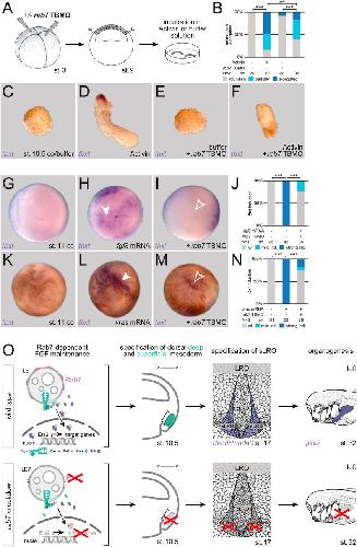 arrowhead), induction site is sphered by tbxt expression. (E, F) Co-injection of either rab7 TBMO or dn-fgfr1