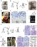 Figure 2. Validation of allografting in X. tropicalis rag2−/− animals. (A) tp53−/− donor animal harboring a thymic tumor (black arrows). (B) Transplantation strategy including the generation of a cell suspension using a 40 µm strainer followed by IP injections in a rag2−/− adult and a wild-type adult control (both 5 × 106 live cells). (C) A rag2−/− transplanted animal with a subcutaneous outgrowth close to the injection site (white arrow, white dashed line) 10 weeks post-transplantation. (D) Microscopy images (ventral view) of rag2−/− transplanted animal showing the engrafted tumor at the injection site before and after removal of the skin (top panels) and internal (top right and bottom). The tumor is also visible upon opening of the abdominal cavity (white arrowheads, white dashed line), in addition to a large tumor mass associated with the intestinal mesenterium (yellow arrowhead). (E) H and E and IHC stained sections from the primary tumor in the tp53−/− donor animal and the tumor graft in the transplanted rag2−/− animal. Black arrowheads indicate regions with neovascularization. (F) Mixed HMA analysis for the tp53 gene on DNA from tp53−/− tumor sample (donor animal), liver (without grafts) and two tumor grafts obtained from the transplanted rag2−/− animal. (G) Transplantation experiment starting from frozen tp53−/− tumor cells. H and E images from the rag2−/− transplant kidney versus a stage matched wild-type are shown. (H) Transplantation experiment starting from tumor ascites cells from an apc+/−/tp53−/− liver tumor bearing animal. Dissection micrographs from kidney, liver and lungs of rag2−/− transplant. Yellow and white arrowheads show visible engraftment regions in liver and lungs, respectively (left). H and E images from the liver tumor in donor animal and liver grafts in the transplanted animal (middle). The presence of tumor cells in the liver of the transplanted rag2−/− animal is confirmed by amplicon deep sequencing at the apc and tp53 target site (right). All black scale bars are 50 µm. White scale bars are 2 mm.