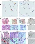 Figure 4. Engraftment of tp53−/− tumor cells in irradiated wild-type X. tropicalis froglet. (A) IP fluid from tumor cell transplanted irradiated and non-irradiated control animals, stained with Natt and Herrick reagent. Red and yellow arrows indicate an RBC and a lymphocyte, respectively. The blue arrow shows a tumor blast cell. (B) H and E- (left) and PCNA-stained (right) sections of engrafted regions in kidney (black arrows) from transplanted irradiated froglet compared with respective kidney sections in the transplanted non-irradiated control froglet. (C) H and E- (left) and PCNA-stained (right) sections of engrafted regions in liver (black arrows) from transplanted irradiated froglet compared with respective liver sections in the transplanted non-irradiated control froglet. All scale bars are 50 µm.