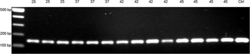FIGURE 4. One hundred and fifty base pairs fragments successfully amplified from Xenopus tropicalis DNA extracted using ZEG. DNA was extracted from 3‐4 individual embryos at NF 25 (lane 2‐4), NF 37 (lane 5‐7), NF 42 (lane 8‐11), and NF 45 (lane 12‐15). A 150 bp target region was amplified and resolved on a 1% agarose gel. DNA from a sacrificed embryo (NF 25) was extracted by the conventional method and used as a positive control (Ctrl) |