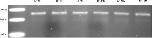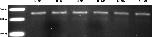 Figure 3. Amplification of ZEG-extracted DNA from NF 19 Xenopus tropicalis embryos. DNA was extracted from NF 19 embryos devitellined (lane 2-4) and the same stage embryos with vitelline membrane left in situ (M; lane 5-7). A 260 bp region was amplified successfully as shown resolved on a 1% agarose gel |